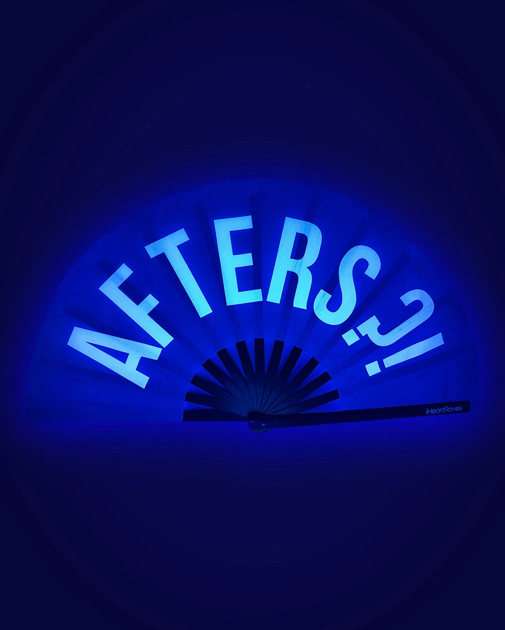 Afters?! UV Reactive Hand Fan ’cause you’re ready to keep the night alive. Featuring an all-black construction with a bold graphic that’ll have you locked in during all your rail-riding chaos.