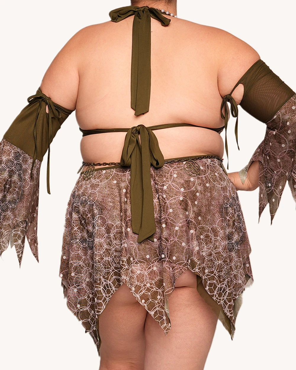 - Adjustable ties on dress and sleeves for customizable fit