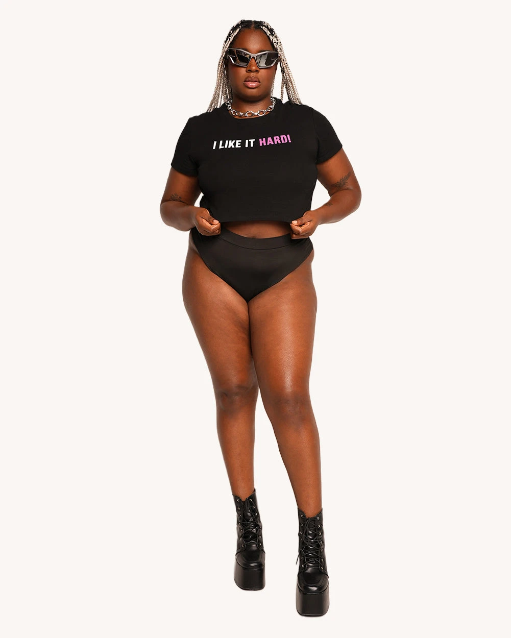 Hard drops. Heavy sets. Zero apologies. The I Like It Hard Cropped Tee is made for the girls who live for the rail, crave the chaos, and like their music (and their style) loud.