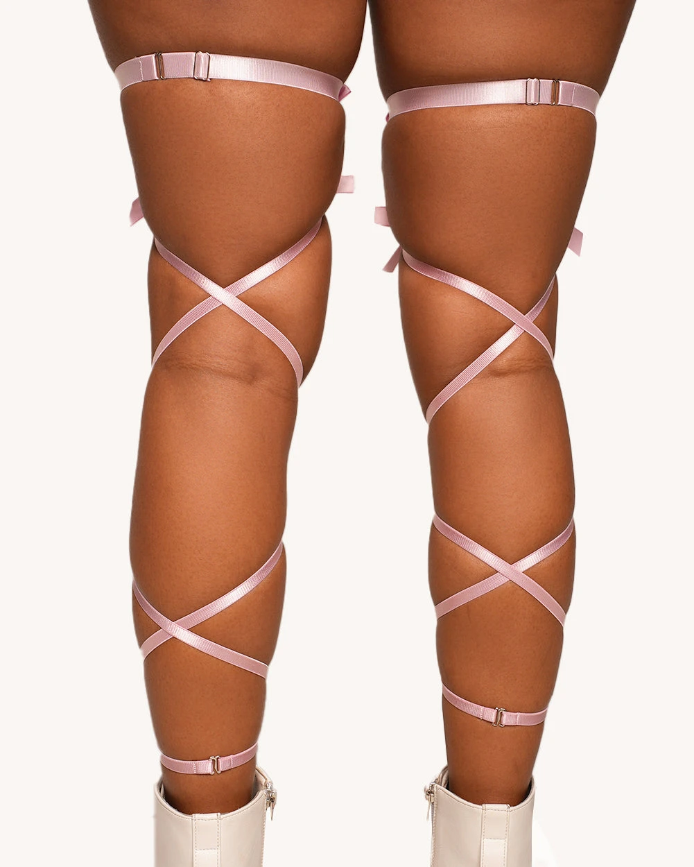 - Adjustable mini leg wrap straps with secure hook-and-eye closure