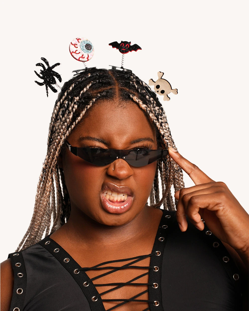 The Phantom Party 10-pc Sprouts Set brings the spooky cuteness straight to your look! Clip in these bouncing bats, creepy crawlies, ghastly ghosts, skulls, and googly eyeballs for an instant Halloween vibe that’s playful yet eerie. Perfect for parties, costumes, or just repping your spooky spirit all October long.