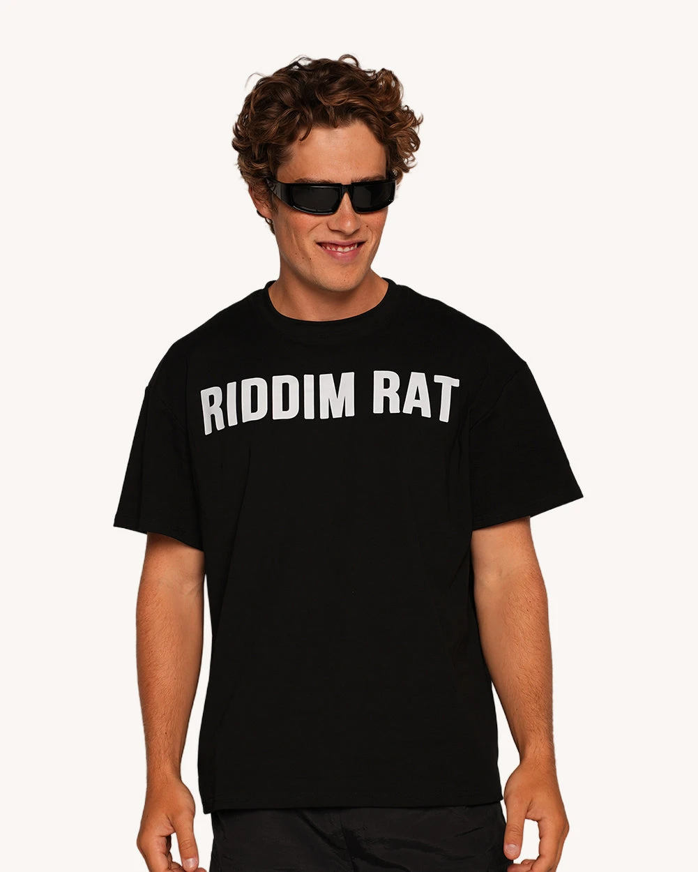 The Riddim Rat Shirt is a must-have for anyone who lives for face-melters and rail-breaking drops! This black unisex tee features bold block lettering front and center and a relaxed fit that keeps you comfy from the first wub to the last.