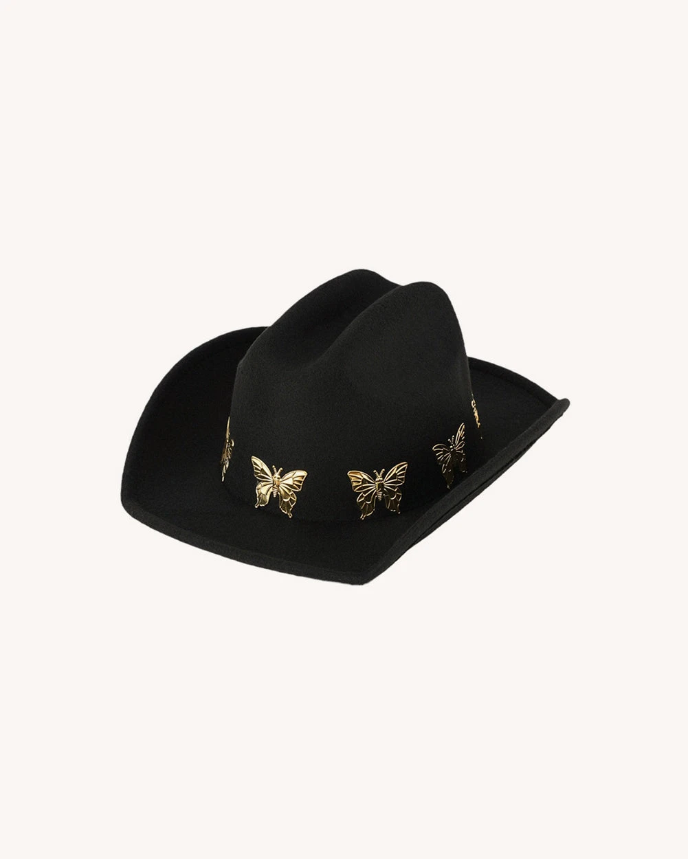 The Ride Away Butterfly Cowboy Hat is your festival fairytale come to life, where western grit meets dreamy desert magic! Gallop into the sunset with its all-black construction and gold butterfly accents.