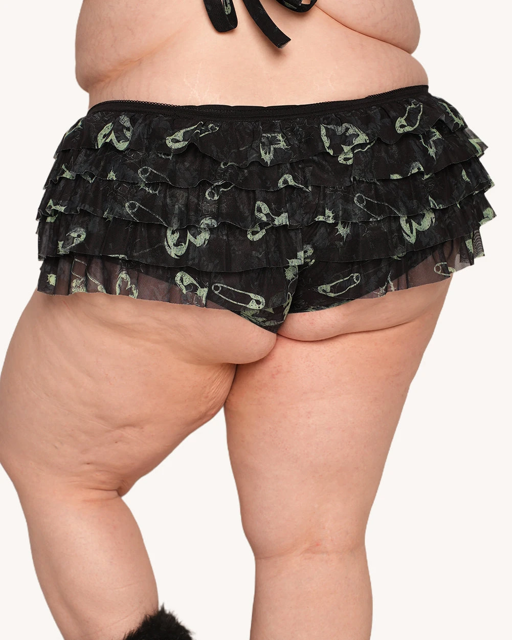 Sunflowerraver x iHR Get Bent Bloomers ’cause you’re sweet, soft, and slightly unhinged! These bottoms have layers of moody black mesh and a delicate pink print that brings up all the feels. These are the main character shorts for your next breakdown… or breakthrough!