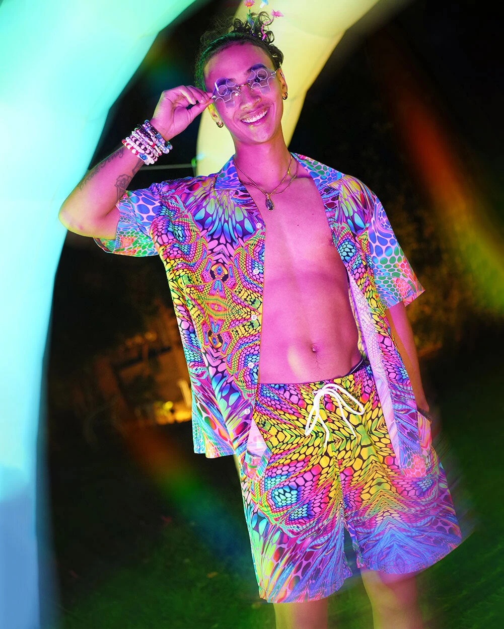 Slither into the spotlight with the Viper Vision Camp Shorts! This trippy masterpiece is designed to captivate and mesmerize, with its stretchy waistband, adjustable drawstrings, and enchanting viper print.